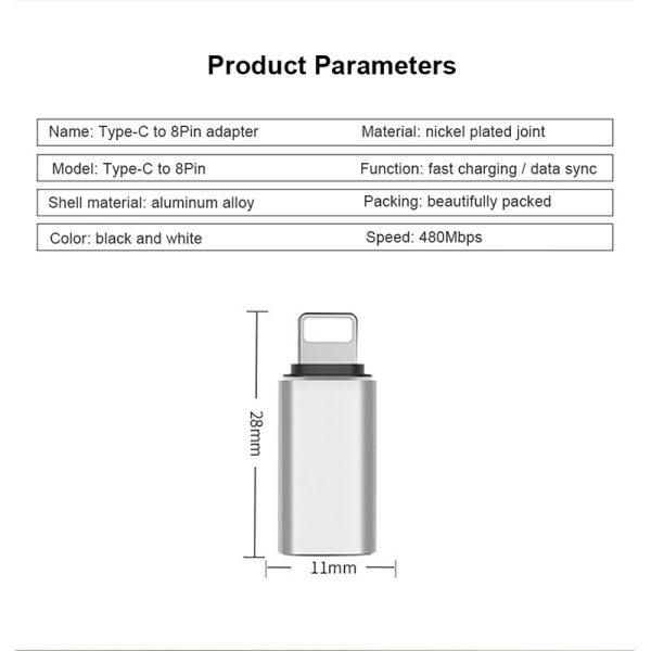 The 8-Pin Male Lightning to Micro USB Female Adapter has gold-plated contacts for smooth, corrosion-free connections.