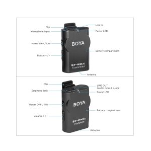 BOYA Wireless Lavalier Microphones have a built-in Omni-directional microphone with 360° flexible sound pickup in an unobstructed transmission distance of 50 meters.