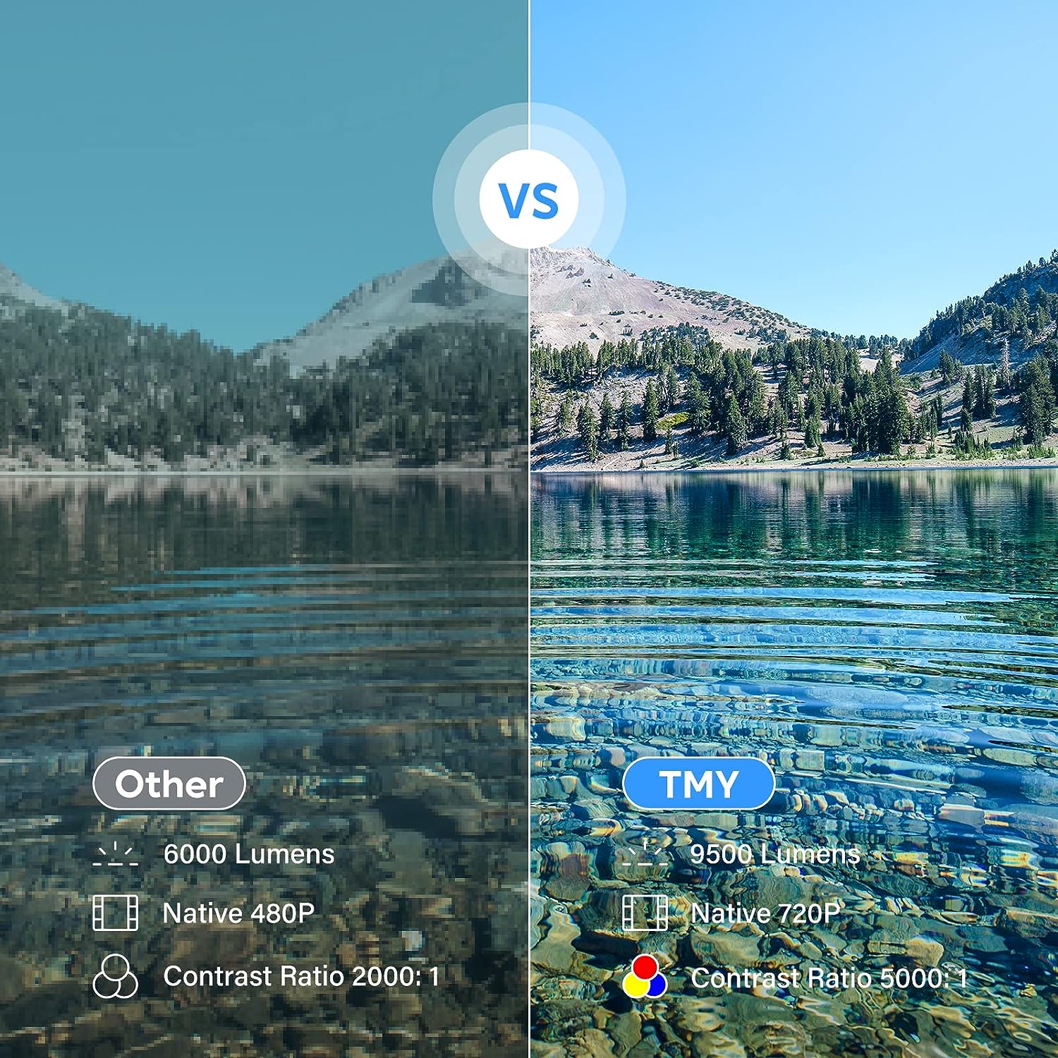 The TMY Portable Mini Projector is equipped with 1080P supported resolution and 9500 Lumens brightness,
