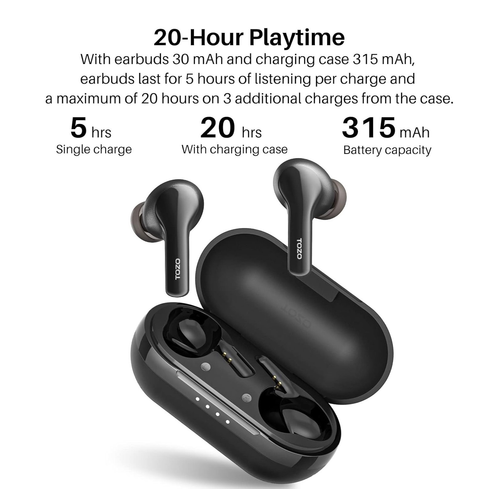 Get 6 hours of playback per charge, with the compact case providing 3 extra charges.